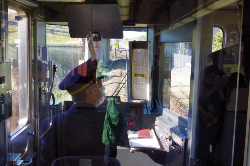 先頭車両で、もろもろを堪能する。快速みえの指定席は、固定のボックス席も
